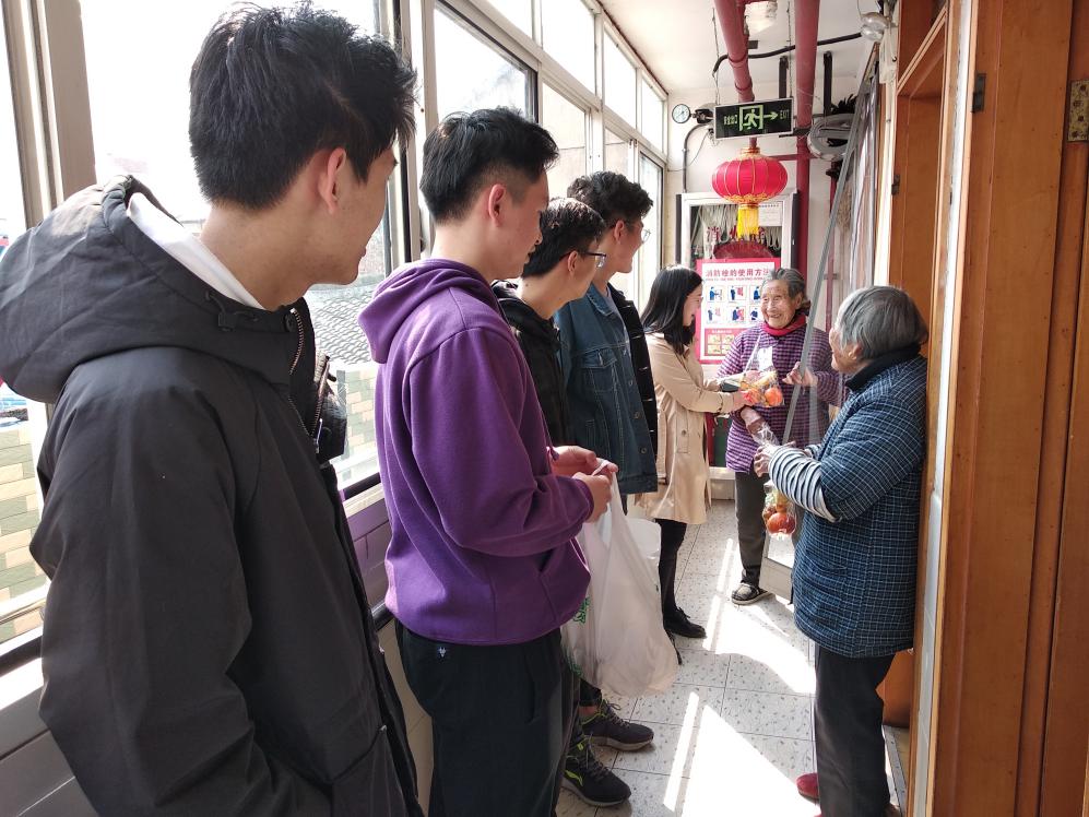 志愿者们在养老院工作人员和老师的带领下分组拜访了各个宿舍的爷爷奶奶,给他们分发水果,有的志愿者给老人按摩,有的唠唠家常,有的陪老人下棋,有的与老人合唱,看到老人和蔼可亲笑脸,志愿者们也非常的开心,画面非常和谐温馨。