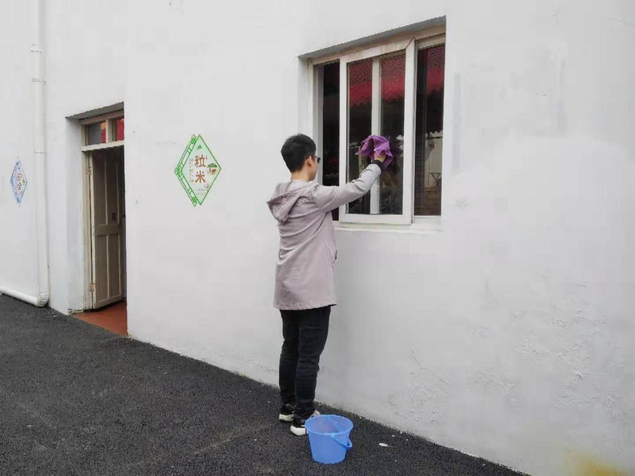 在活动中,志愿者发扬不怕苦、不怕累的精神,为老人们打扫食堂、清理宿舍、整理休闲室,志愿者在养老院院子里忙得不亦乐乎,让老人们的环境更加明亮整洁。