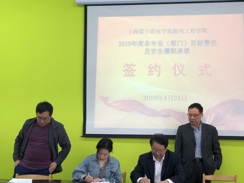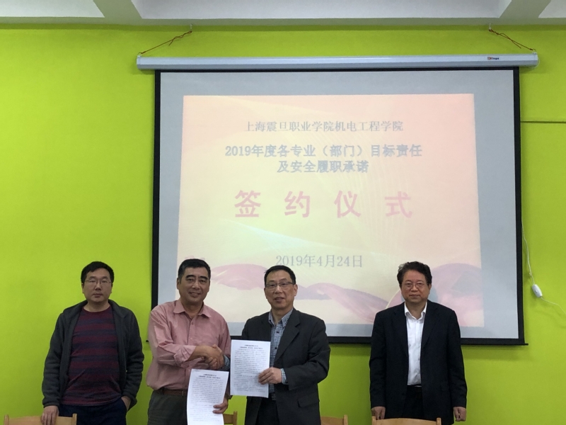 4月24日,机电工程学院在学院第一会议室举行2019年学院考核目标责任暨安全责任书签约仪式。学院院长姚黎明、学院党总支书记、副院长陈亚立、副院长袁明及各系专业主任、全体老师出席会议,会议由党总支书记、副院长陈亚立主持。