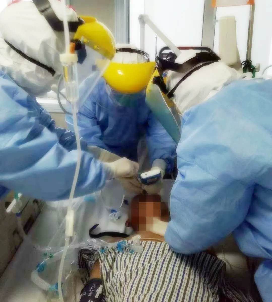 一线医生发过来的:病人使用捐赠物资的照片资助医院抢救病人的照片