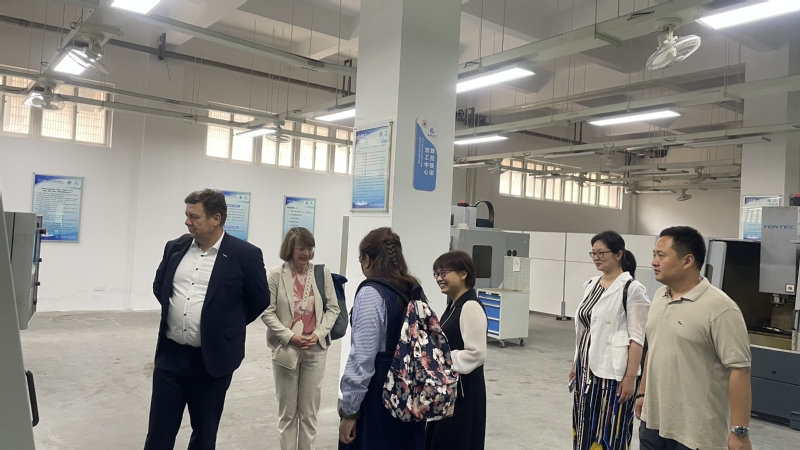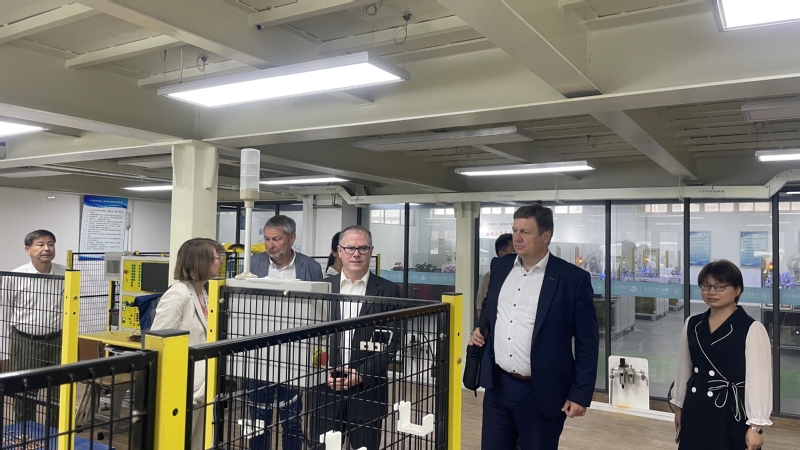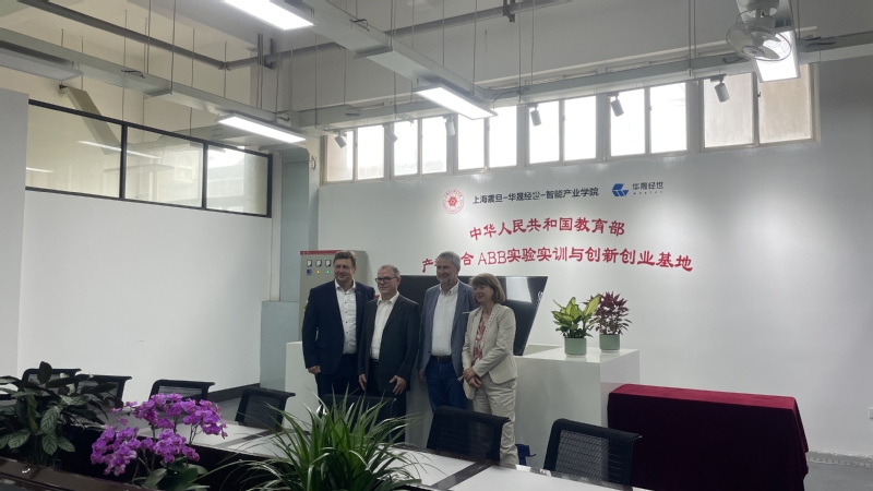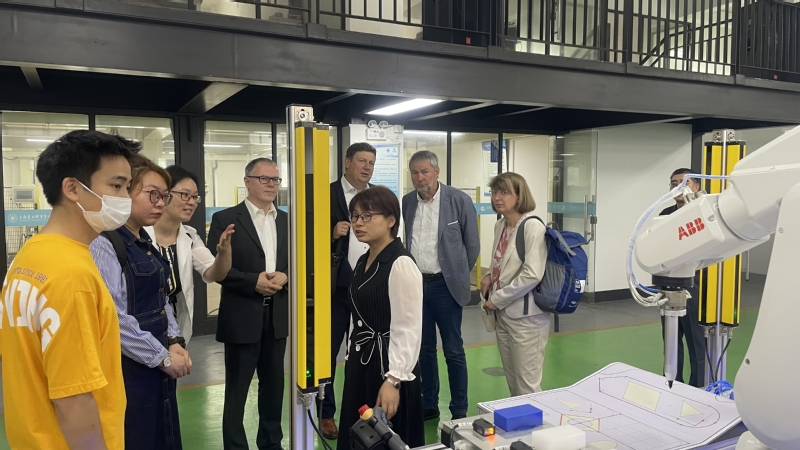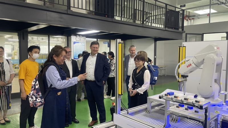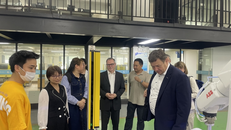 本次议程首先由张沈董事长介绍集团和学院情況,然后是梅泽堡大学校长介绍学校情况,紧接着双方互赠礼物、进行座谈交流,三方到中华人民教育部产教融合ABB实验实训与创新基地进行实地考察并合影留念。