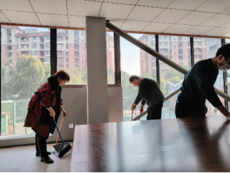 早上,员工们自愿提前抵达公司,纷纷拿起扫帚、拖把、清洁剂等清洁工具,分工合作,有条不紊地对办公区域、休息区域、公共区域进行彻底清洁。他们认真细致地擦拭桌面、清理办公桌上的杂物,清扫地面上的垃圾,让整个办公环境焕然一新。