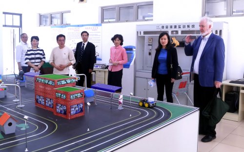 期间Dr. Donaldson教授还参观了我院的校园环境、物联网技术专业实训室和机电一体化实训室等多个实训中心,并给予了高度评价,表示希望与我院建立长期的合作关系。张惠莉董事长表示,物联网专业只是与美国加州浸会大学合作的开始,今后我院国际交流学院将与CBU继续开展深度合作,探索“3+2”或“3+1+1”等多种合作模式。震旦学生到与我院合作的大学去深造,合作院校学生来震旦访学将成为常态。