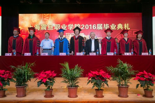 2016年6月13日上午9:00,我院2016届毕业典礼在大礼堂召开。震旦教育基金会理事长张惠莉、名誉院长杨德广、黄鼎业、学院董事长张沈、院长陈力华、党委书记黄晞建、副书记夏臻、副院长刘彬、王纯玉;以及各二级学院院长、党总支书记、任课教师和毕业班辅导员参加了毕业典礼;上海市优秀毕业生家长也应邀参加了毕业典礼。