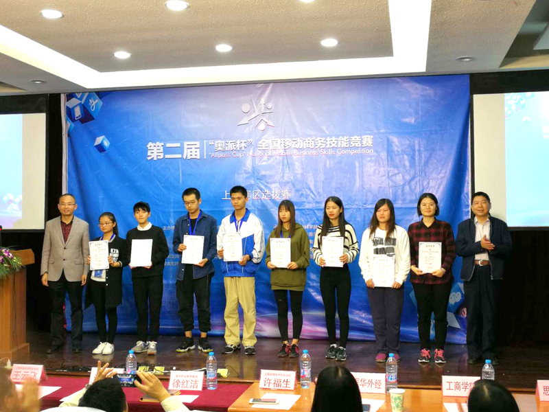 上海震旦职业学院本学期技能竞赛首战告捷。10月20日,8:00至下午2:00,我校机电工程学院15级多媒体技术专业秦茹芬、孙萱、胡星宇三位同学在上海科技学院举行的第二届“奥派杯”全国移动商务职业技能竞赛上海选拔赛项中,与全市高职院校22支队伍同台竞技,经过5个小时的奋力拼搏,最终喜获三等奖,为我校争得荣誉。同时上海震旦职业学院荣获此次竞赛优秀组织单位奖。